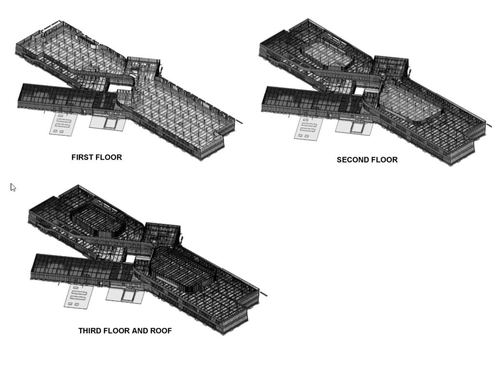 His favorite project is V3 Sports Center Phase 2, Minneapolis, which will offer affordable community swimming lessons to reduce drowning disparities among people of color. The nonprofit sports center will include a community center with a 25-yard teaching pool, the Olympic-sized 50-meter competition pool used at the 2021 U.S. Swimming Olympic Trials in Omaha, a locker room, running track, parking garage, and potential rooftop deck recreation space. IMEG provided structural design. Why it’s a favorite: “I really had to be creative when modeling it. The architects wanted an open space design, so this needed to be modeled so all the disciplines could coordinate and hide as much structural framing, mechanical ducts, and conduit as possible. We used multiple curves and sweeps for the wandering path that ties all levels of the building together; landings needed to be added to satisfy code requirements for the ramps.”