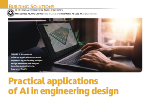 In a recent article published by Consulting-Specifying Engineer, Senior Director of Industrial Mike Walsh, PE, LEED AP, and Vice President of Innovation Mike Lawless, PE, FPE, LEED AP, explore how AI is being applied in IMEG’s real-world engineering design.
