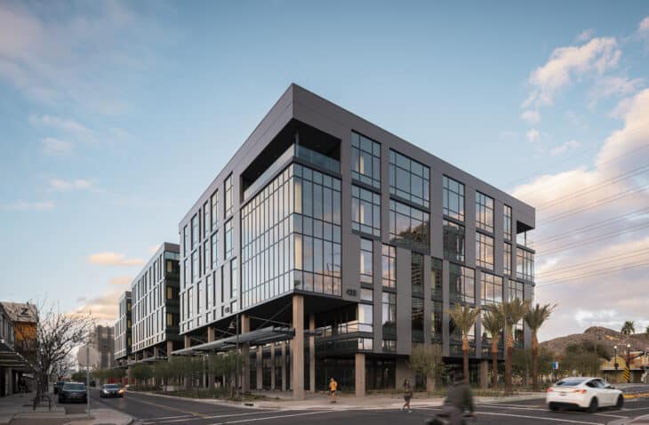 The project: The new headquarters includes perimeter executive offices, open office areas, focus and huddle rooms, conference rooms, coffee bar and breakroom, mail room, and storage. The facility also includes a golf simulation room and training area.