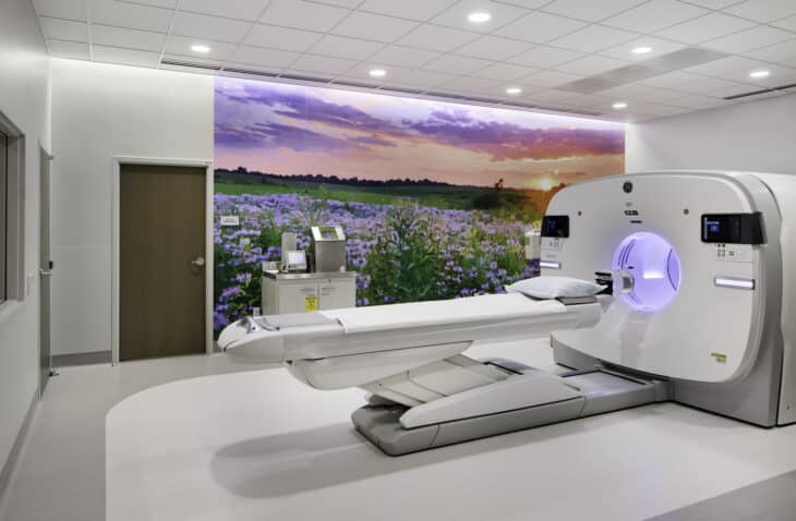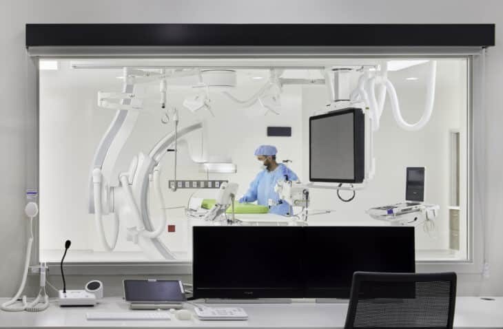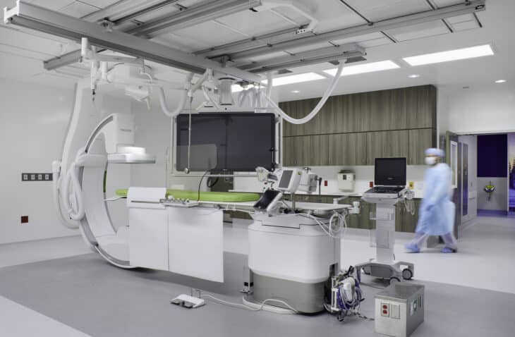 The project: The new facility houses outpatient services for cardiac catheterization and electrophysiology procedures, a cardiac rehab facility, and MOB for two physician groups. The design featured two cardiac cath labs, diagnostic imaging lab, a grand entrance, and parking garage below level 1.