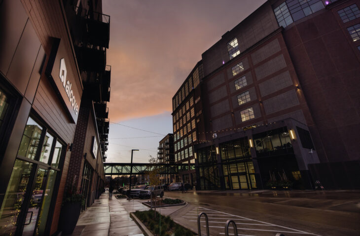 Project approach: IMEG worked closely with the owner/developer and architect to optimize the equipment placement and mechanical/electrical spaces. IMEG frequently met with the owner to review and describe design aspects to ensure the owner building systems perform optimally and can serve the life of the building. IMEG joined weekly conference calls with the architect to coordinate the space needs of the MEP systems. One solution was to add a mezzanine space above the trash/maintenance area to elevate plumbing equipment off the floor to give the owner more leasable space.