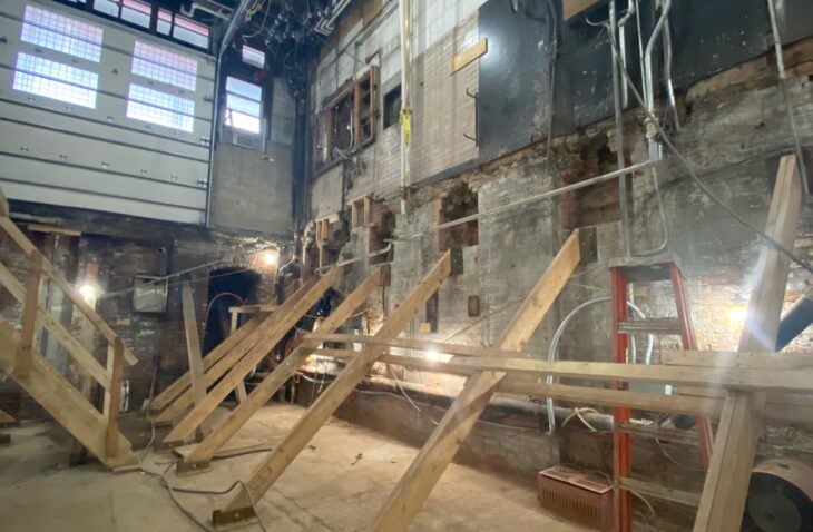 Challenge: Designed for horses, yet required to accommodate a modern fire apparatus, the floor had been supported by temporary columns that were no longer sustainable, necessitating the installation of a new slab. The structural stability of the entire building relies on the steel framing below the apparatus floor. Solution: Replacement of the beams was sequenced to prevent any single weak point occurring where the building could fall in on itself. The structural system was altered by removing the center support beams to expand the usable clear-space in the cellar, which required altering the basis by which the beams worked in concert with the load-bearing walls. Lastly, the existing beam pockets in the exterior walls were enlarged and reinforced without negatively impacting the structural stability of the load-bearing walls or disturbing the upper floors.