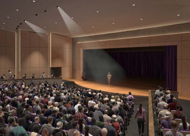 The project: A new 500-seat auditorium with supporting backstage spaces, including a scene shop, dressing rooms,