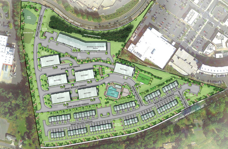Mount Sterling, a new mixed-use residential development in Loudoun County that falls within the Leesburg Joint Land Management Area (JLMA) so all water and sewer systems have to meet the master plan requirements. Mount Sterling will have 98 age restricted units, 144 multi-family units, and 74 townhomes when complete. An array of on-site amenities including a pool, community gardens, and various play areas will create a welcoming and community centric environment for the residents that is also conveniently located within walking distance from shops and restaurants. IMEG is also making improvements to the existing Potomac View Road as part of our design scope.