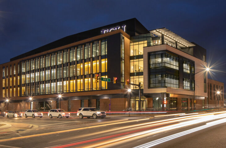• Lab support needs: Designed for stringent lab requirements – minimizing vibration, controlling acoustics, and supporting bioprocess equipment and vivarium systems. A mechanical penthouse serves building-wide utilities.