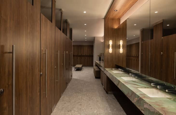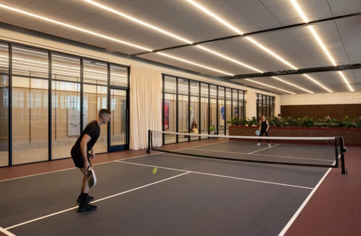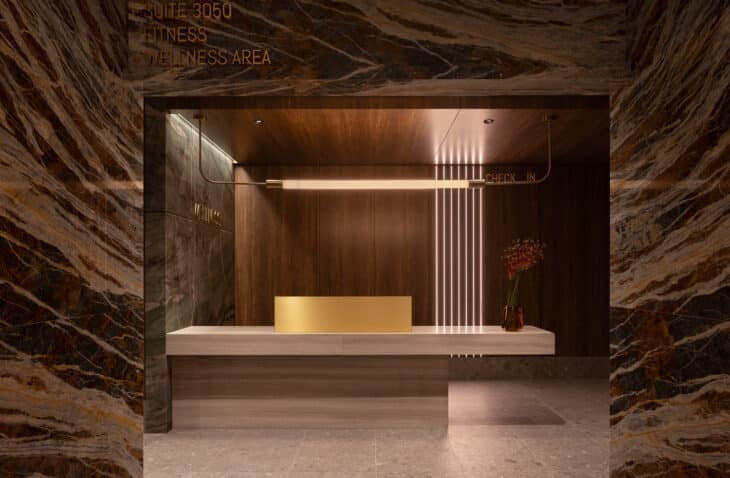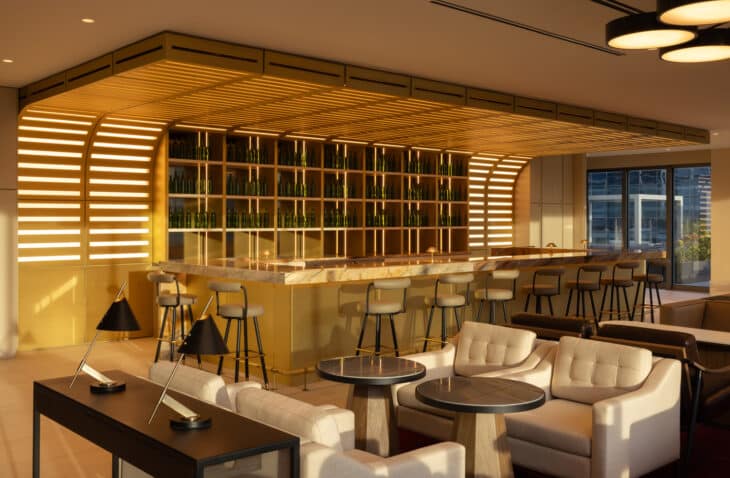 The goal: The building, which originally opened in 1966, required an extensive overhaul from various aspects. Onni Group’s plans for the building included the creation of new core and shell office spaces with a new bar and restaurant in the lobby and a three-level addition to the top of the building to house a spa, pickleball court, and lounge. The building also contains two subterranean levels of garage parking and back of house spaces.