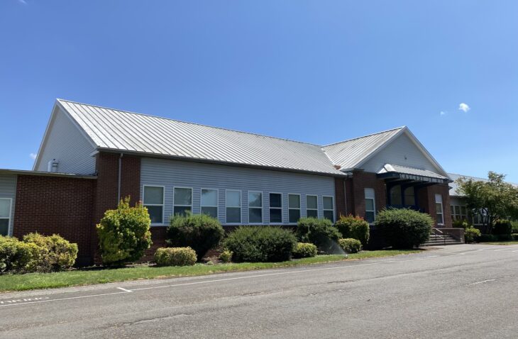 Project features: The existing single-story structure spans approximately 32,000-sf and includes masonry brick cladding, long window lines, and a straight sheathed roof diaphragm supported by rough-sawn rafters and ceiling joists. The original construction also incorporates wood posts and traditional masonry envelope assemblies.