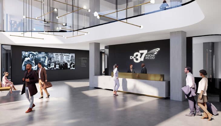 Built in 1932, 125 Barclay Street is home to District Council 37 (DC 37), New York City’s largest public employees union. With the exception of retaining its original terra cotta floors, the 10-story building is under a full gut and exterior renovation to enhance operating efficiency, achieve longer term compliance with Local Law 97’s 2035 greenhouse gas emission limits, and improve the quality of the indoor environment for its inhabitants. System and interior upgrades include new mechanical, electrical, plumbing and sprinkler systems; an 11th story build-out; and new interior fit-outs with flex walls and modern finishes.