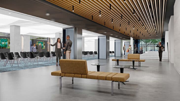 IMEG designed the high efficiency mechanical system using water-cooled variable refrigerant flow units (VRF) for the perimeter, which can be ramped up or down depending on demand, and simpler, less costly water cooler units for the interior. Two large dedicated outside air units (DOAs) will bring fresh air into the building and a MERV 13 air filtration system will be employed to achieve to address virus transmission concerns in the aftermath of the COVID-19 pandemic. The design team is targeting LEED-Gold and WELL Building certifications.