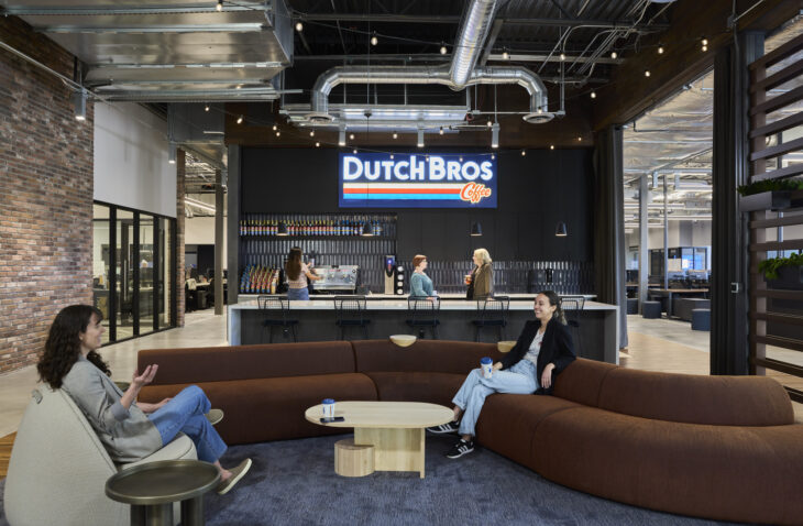 The outcome: The new facility provides Dutch Bros. Coffee with an energizing and collaborative space for employees to engage and connect.