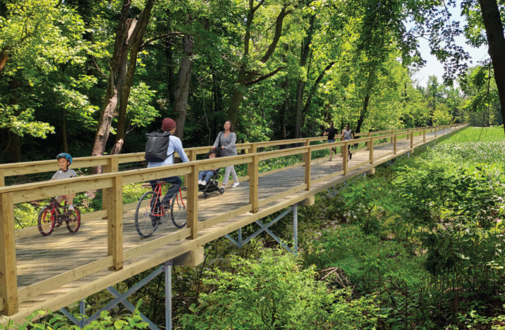 Challenges & solutions: Balancing trail connectivity with environmental constraints and existing land use conditions required careful alignment planning and regulatory coordination. IMEG evaluated multiple corridor options and screened for environmental and permitting considerations, resulting in feasible, context-sensitive recommendations.